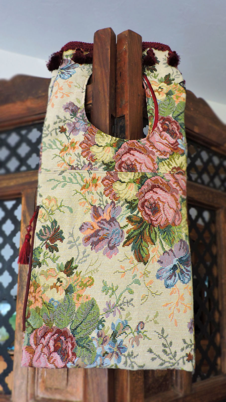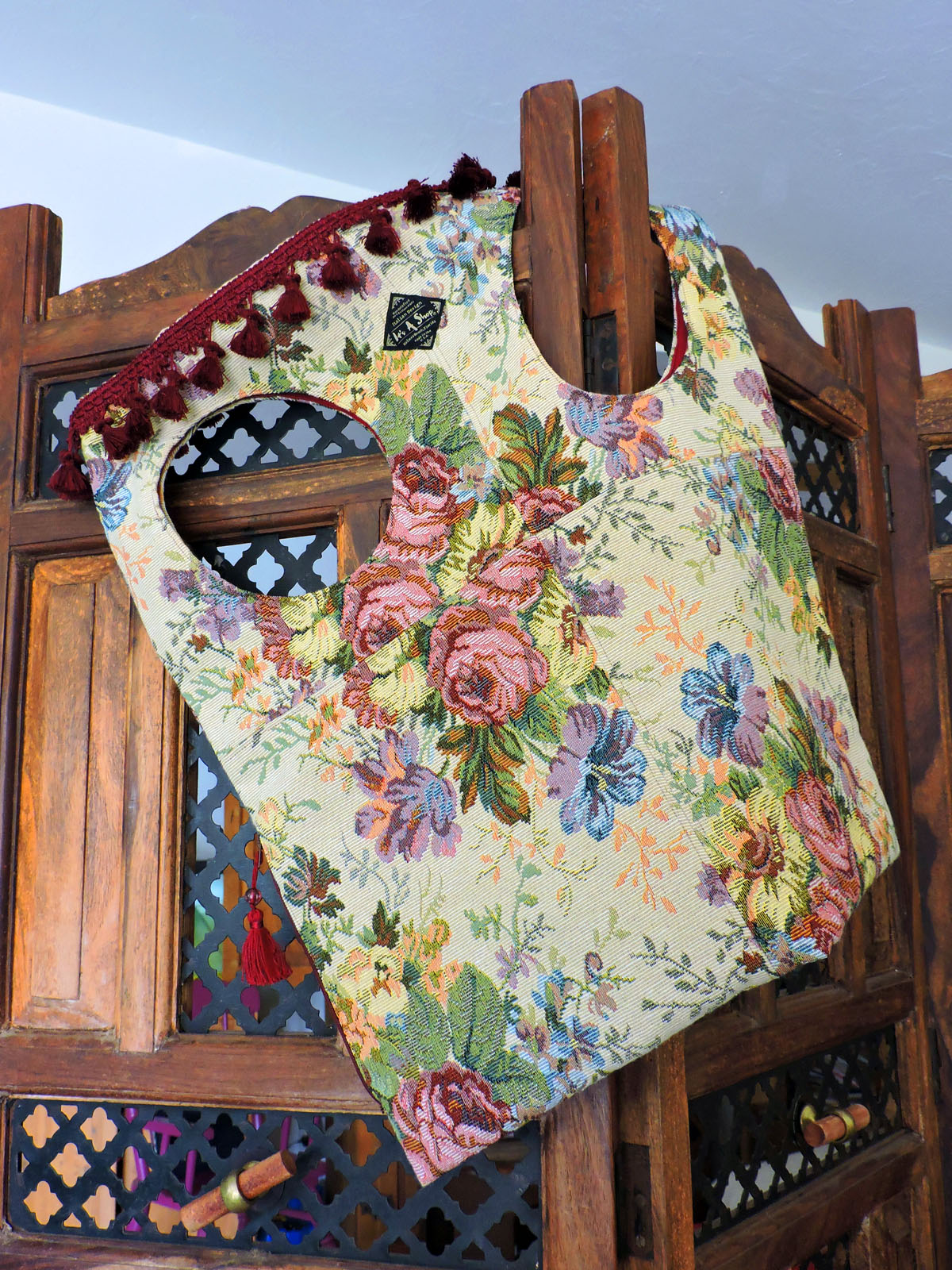 One of a kind, handmade shoulder/back pack bag, made from 100% Linen.